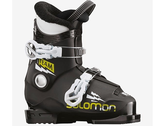 But chłopięcy Salomon TEAM T2 oferuje wygodę i łatwość wykonywania skrętów dzięki zastosowaniu cienkiej skorupy i powiększonego trzpienia mocującego Bardzo wygodna i ciepła wkładka daje duży komfort użytkowania.