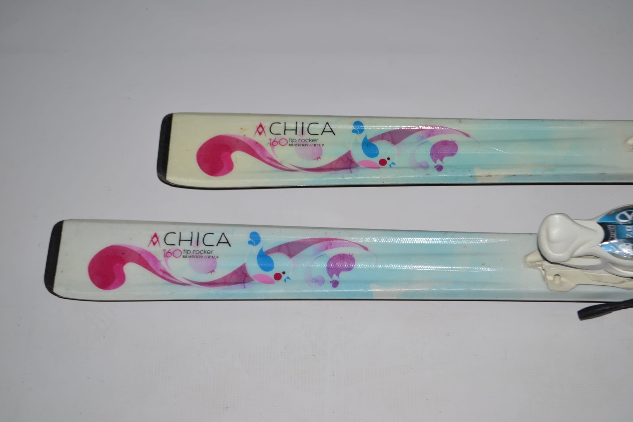 Chica to propozycja idealna dla najmłodszych dziewczynek. Konstruktorzy z Völkl, całą swoją duszę umieścili w nartkach, które stworzyli dla dzieci. Zapewnili tym samym, to co najważniejsze na stoku: bezpieczeństwo i szybkie postępy w nauce jazdy, w czasie radosnej zabawy na śniegu razem z rodzicami. Niezwykle lekka nartka, zachowująca wszystkie właściwości nart "dorosłych", w skali dla najmłodszych.. Na uwagę zasługuje design nart - oryginalna grafika w różnych odcieniach błękitu z pewnością będzie dumą najmłodszych narciarek.